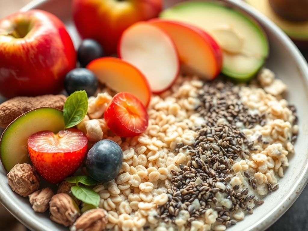 - Fibras solúveis: Aveia, chia e maçãs reduzem a absorção de colesterol.